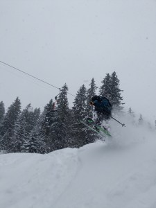 I will be cheering for the Teams race tomorrow, so I was stoked to have a powder day with the Canadian Spousal Support Team (Cliff and Jenny). Our original plan was to go ski on Glacier 3000, which may be the best glacier name I have ever heard. Unfortunately it was closed today due to the weather. The avalanche danger has been increasing due to the volume of snow and wind loading we have been getting over the past two days.